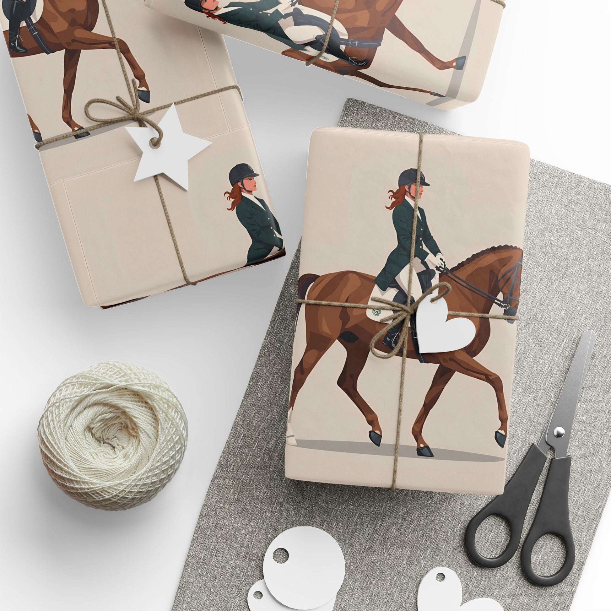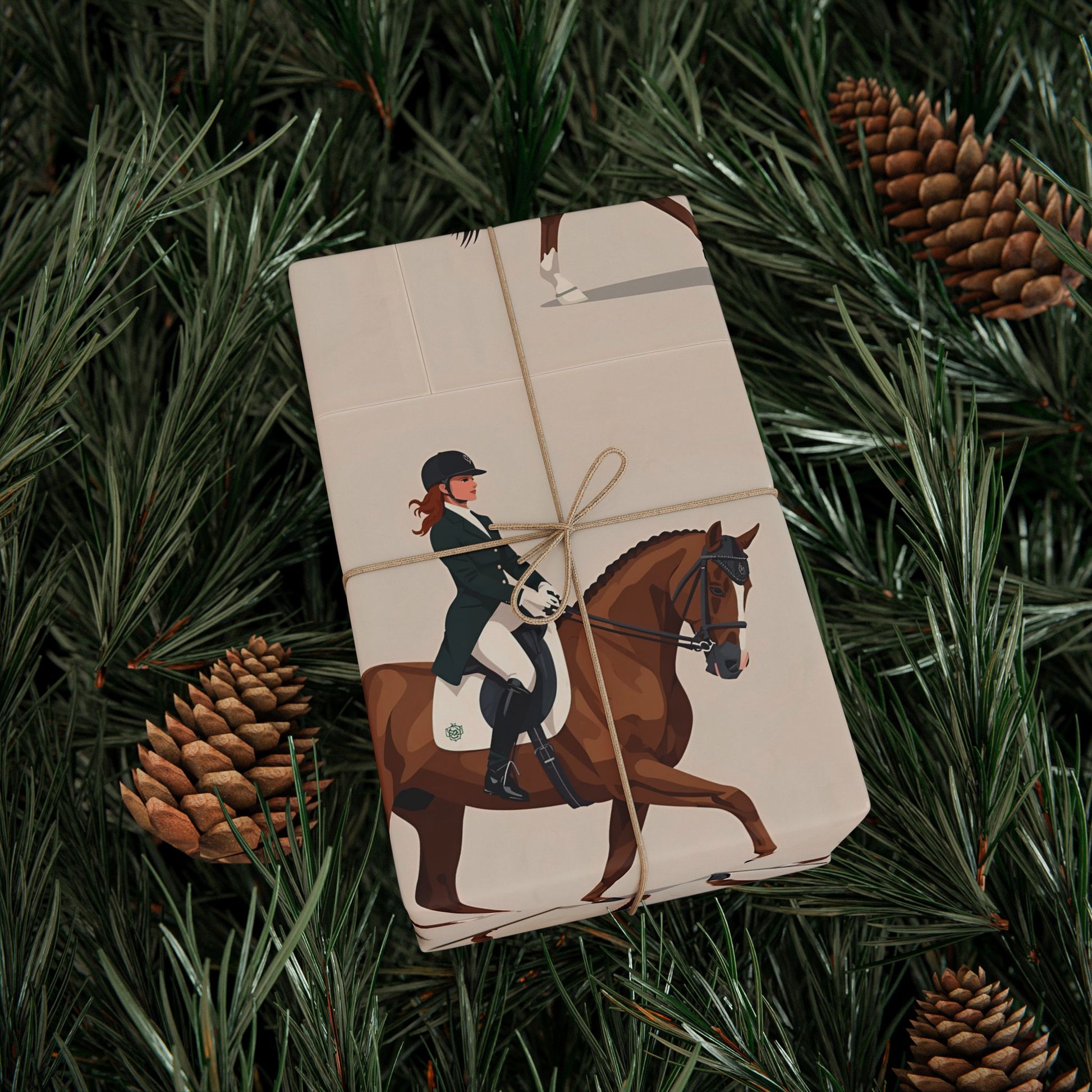 Vintage dressage gift wrap on a taupe backround. This design is a stylish and sophisticated way to wrap gifts for equestrian enthusiasts. Made with 90 gsm fine art paper in a subtle glossy finish. One-sided print for easy wrapping