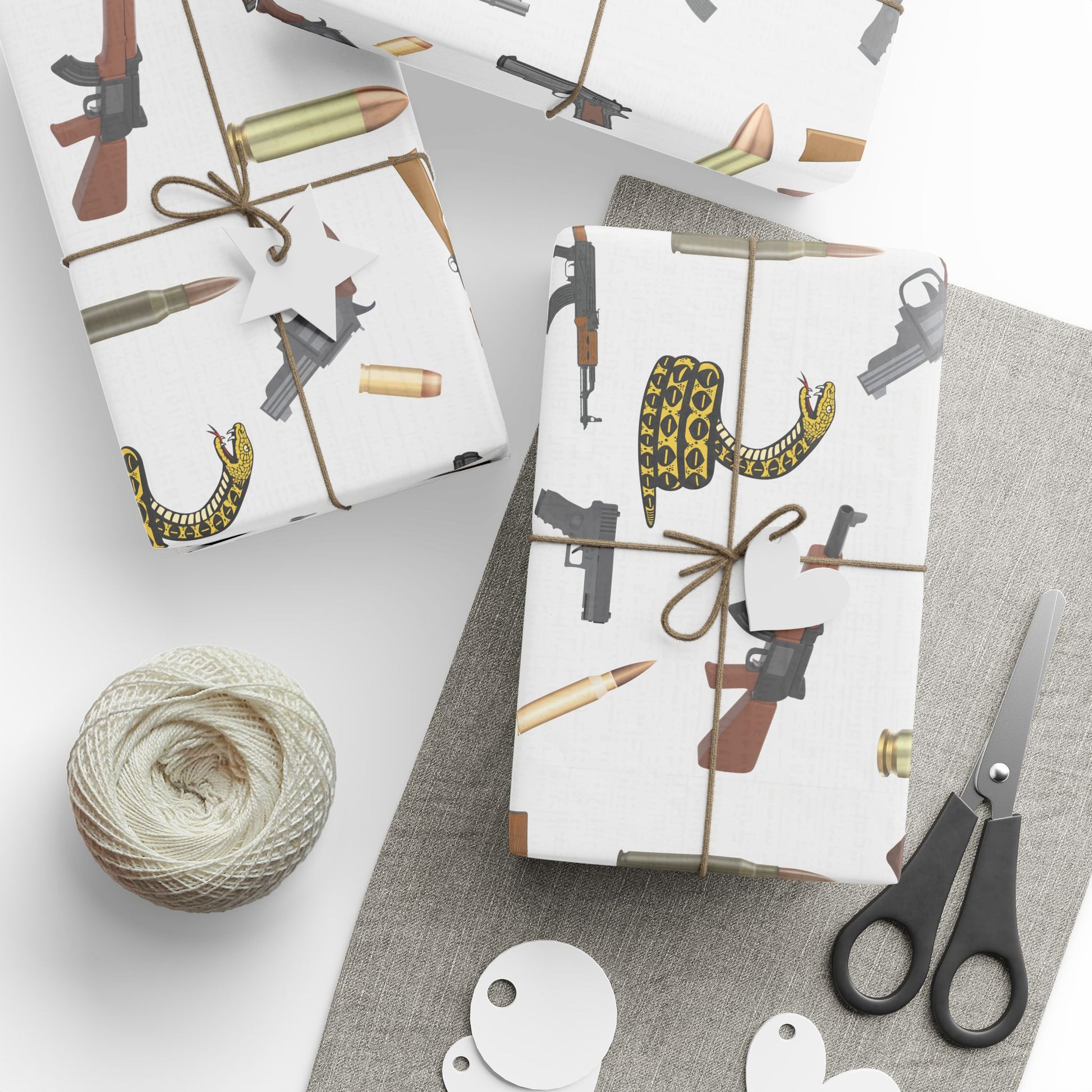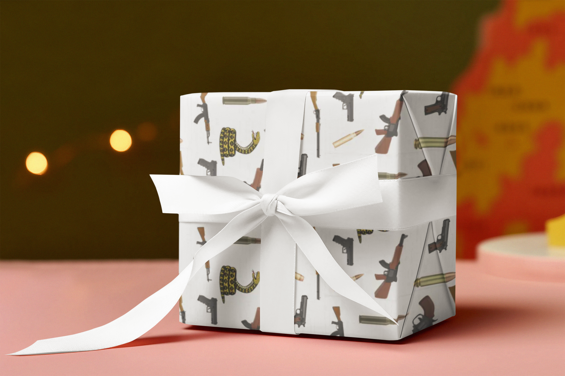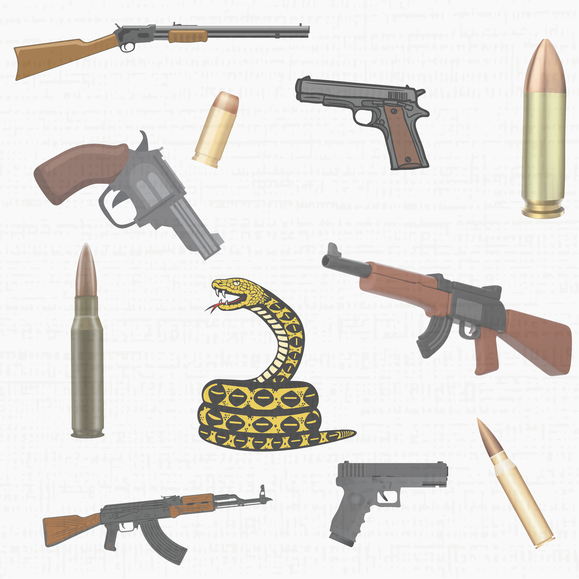 Pew Pew, Merry Christmas to You. Its not for everyone but we think its cute. A variety of guns and ammunition displayed in a modern toile motif. perfect for hunters, 2A enthusiasts and those that just love a sassy print. Product features - glossy finish. Made with 90 gsm fine art paper.